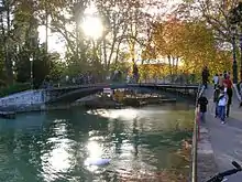 Le Pont des Amours, disposé au-dessus du canal du Vassé, relie les jardins de l'Europe au Pâquier. Il s'agit d'un pont en fer typique du début du XXe siècle.