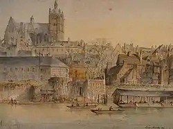 L'ancien quartier des Tanneries inspira bon nombre de peintres manceaux du milieu du XIXe siècle. Alors industrieux et sale, le quartier, situé au bas de la colline, se trouve coincé entre la muraille du IIIe siècle et la Sarthe. À cette époque, les maisons à pan de bois sont enchevêtrées les unes sur les autres. Les séchoirs se mêlent aux restes de murailles gallo-romaines. Les peintres ont rendu tout cela sous différents jours, entre pittoresque, réalisme et excès. Surtout, les tanneries permettaient d'obtenir un panorama saisissant, souvent du nord-ouest du vieux Mans. L'atmosphère de l'endroit est contrastée entre décrépitude du quartier bas (voire de la cité Plantagenêt tout entière) et éclat de la cathédrale, dominant la colline tout entière. Certains peintres, à l'image de Charles Suan, Charles Dugasseau ou Louis Moullin, ont beaucoup travaillé cet effet de perspective. D'autres ont directement opté pour des représentations plus rares : la détérioration au plus près du quartier comme pour la place de l'Hôpitau ou des plans rapprochés de la muraille par Georges Crinier.