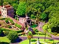 Les jardins et parcs ont été créés à la Renaissance et à la période baroque et sont décorés avec des fontaines et des sculptures. Le jardin a une flore variée et la zone est considérée comme un biotope.