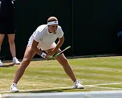 En juin, pour la reprise sur gazon, elle s'incline à Birmingham contre Dayana Yastremska en trois sets serrés (6-3, 5-7, 5-7)[78] au second tour, mais juste avant le tournoi de Wimbledon, elle atteint la finale du tournoi d'Eastbourne dont elle est tenant du titre, tombant contre la Tchèque Petra Kvitová[79] en deux sets (3-6, 2-6). Elle avait auparavant sortie l'Australienne Ajla Tomljanović (6-4, 6-4), profité de l'abandon de Madison Keys (6-3 ab.) et battue Anhelina Kalinina (6-3, 6-2) et l'Italienne Camila Giorgi (6-2, 6-2). Fin juin elle atteint la deuxième semaine de Wimbledon, sa meilleure performance en Grand Chelem depuis quatre ans. Elle vainc Océane Dodin, la qualifiée Yanina Wickmayer puis la Roumaine Irina-Camelia Begu. Alors qu'elle bénéficie d'un tableau ouvert, elle est éliminée en huitièmes de finale par l'Allemande Tatjana Maria, 103e joueuse mondiale, qui dispute le premier huitième de finale de sa carrière à 34 ans[80].