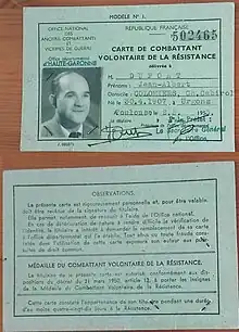 En 1955, il reçoit la Croix du Combattant Volontaire de La Résistance. Seuls les titulaires d'une carte spécifique sont autorisés à porter cette décoration (voir photo ci-contre[3]).