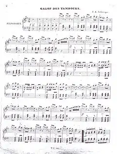 Il a laissé un très grand nombre de partitions, qu'on peut trouver conservées au département de la musique de la Bibliothèque nationale de France. Au nombre de celles-ci, le Galop des tambours, immense succès au Carnaval de Paris en 1839 et 1840. Joué sous la direction du compositeur au bal du théâtre de la Renaissance, il était interprété par un orchestre comprenant quarante tambours.
