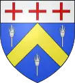 D'azur au chevron d'or accompagné de 3 flambeaux d'argent allumés de gueules, au chef d'argent chargé de 3 croisettes de gueules[1].