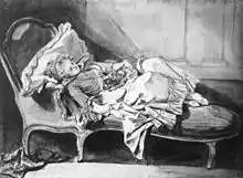 - Le Songe, dit aussi Jeune femme lutinée par des amours, vers 1775-1780, pinceau et encre grise sur traits de pierre noire sur papier vergé, 22,1 x 37 cm, Orléans, musée des Beaux-Arts[56].
