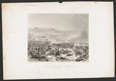 - Bataille du Mont-Thabor, , gravure d'après les tableaux de Léon Cogniet et Henri Félix Emmanuel Philippoteaux, ainsi que le dessin d'Édouard Girardet[9].
