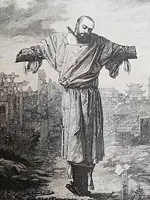 - « À Siang-Yang-Fou, j’ai subi quatre interrogatoires, à l’un desquels je fus obligé de rester une demi-journée les genoux sur des chaînes de fer et suspendu à une poutre de bambou. À Ou-Tchang-Fou, j’ai subi plus de vingt interrogatoires, et ... j'ai reçu cent dix coups de bambou parce que je n’ai pas voulu fouler aux pieds la croix »[Note 16].