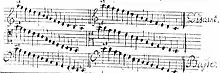 « Quoique le système qui se trouve de l'autre côté soit le plus naturel et le plus aisé, mais comme il serait difficile de l'introduire à cause des six lignes, en voicy un autre que l'on pourra introduire tous les jours et que tous les musiciens pourraient entendre presque sans les avoir averti. Pour ce sujet, on se servirait de 5 lignes de six portées de clefs de deux différentes appellations des notes. Ce système aurait tous les avantages du premier des deux. Il faudrait connaître deux différentes clefs, je veux dire il faudrait la voir appelée de deux différentes façons (illisible) qu'il ne serait pas tout à fait si naturel que le premier, mais par récompense il aurait sur le premier un grand avantage, c'est que pourra s'en servir qui voudra, sans en être convenu avec qui que ce soit et être entendu de tout le monde[9] ».