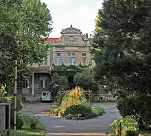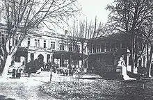 - École normale primaire d'Avignon avec la photo de la statue de Jean-Henri Fabre dans le parc.