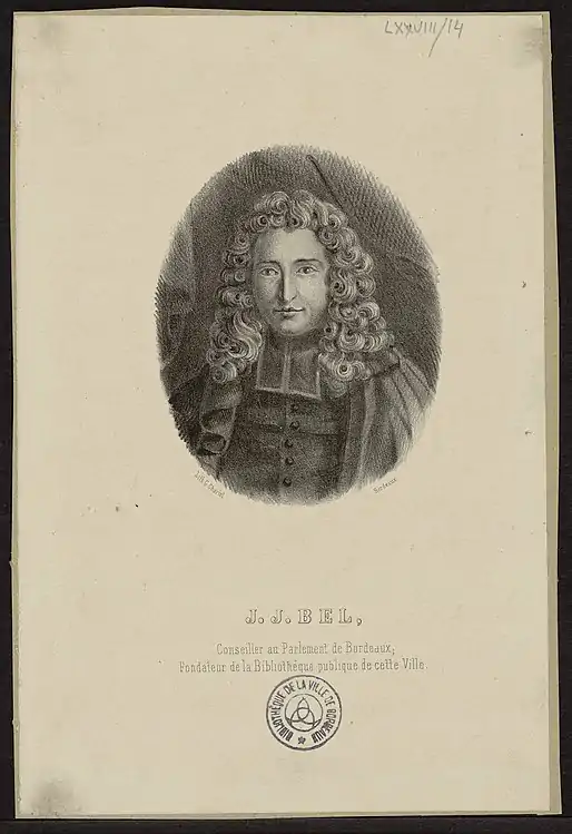 - Paul Courteault, « Le conseiller au Parlement de Bordeaux : Jean-Jacques Bel », Revue française d'histoire du livre, Bordeaux, Société des Bibliophiles de Guyenne, , p. 67-85 (Bibliothèque municipale de Bordeaux, Cote : Br. 6651 Rés).