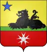 D'or au lion couché de sable, soutenu de sinople, adextré en chef d'une étoile d'azur ; champagne du tiers de l'écu de gueules au signe des chevaliers légionnaires.[2] |