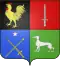 Écartelé ; au premier de sable, au coq d'or, crêté et barbé de gueules ; au deuxième des barons tirés de l'armée ; au troisième d'azur à la lance et à l'épée d'or en sautoir, surmontées d'une étoile d'argent ; au quatrième de sinople, à la levrette d'argent, passant et colletée du même.[2],[3],[4] Livrées : les couleurs de l'écu ; le verd en bordure seulement[2]. |