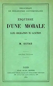 - Esquisse d’une morale sans obligation ni sanction, Paris : F. Alcan, coll. « Bibliothèque de philosophie contemporaine », , 1885, in-8°, 254 p., rééd. Allia, Paris, 2008, 224 p. (ISBN 978-2-84485-262-5) Texte en ligne sur wikisource.