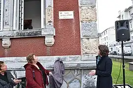 Le , Mme Anjelika Omnès, déléguée au Patrimoine de la Ville de Lourdes, au nom de Mme la Maire Josette Bourdeu et de son Conseil municipal, a dévoilé la plaque officielle portant le nom de l'architecte sur la façade de l'Hôtel de ville. Désormais, le parvis unissant les villas Roques (aujourd'hui mairie), Gazagne et Rachel, toutes trois œuvres de Jean-Marie Lacrampe, s'appelle "Parvis Jean-Marie Lacrampe"[11].