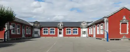Les frontons de ce qui était alors une école professionnelle (relevant de l'enseignement primaire supérieur), devenue depuis le cours complémentaire de garçons puis l'école primaire Honoré Auzon[9], sont représentatifs de la virtuosité atteinte par les tailleurs de pierre lourdais entraînés dans leur art par l'architecte de la ville Jean-Marie Lacrampe.