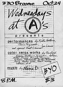 En 1976, Jean-Michel Basquiat et ses amis Al Diaz[11] et Shannon Dawson commencent à graffer à proximité des galeries de Manhattan des messages qu'ils signent sous le pseudonyme de SAMO[12], pour « Same Old shit »[13]. À la même époque Keith Haring recouvre les murs de Radiant Babies. SAMO intrigue et finit par se faire une réputation dans le milieu artistique de l'East Village. Basquiat est invité à une émission de télévision de Glenn O'Brien, et un article lui est consacré en 1978 dans The Village Voice. Il se lie avec Haring, le rappeur Fab Five Freddy et Kenny Scharf. Il continuera à graffer en solo jusqu'en 1979, signant la fin du projet par l'inscription SAMO IS DEAD[14] (SAMO est mort) sur les murs de SoHo. La même année, il fonde le groupe de noise rock Channel 9 puis rebaptisé Gray avec Shannon Dawson, Michael Holman, Nick Taylor, Wayne Clifford et Vincent Gallo. Il y joue de la clarinette et du synthétiseur[15]. Leurs concerts se situent dans la veine du no wave où la dissonance, le bruit et le cri se déploient de manière brute, avec notamment le saxophoniste John Lurie et le guitariste Arto Lindsay[16].