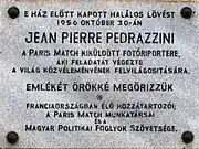 « M. Jean-Pierre Pedrazzini, reporter photographe aux qualités professionnelles unanimement reconnues et appréciées, entièrement dévoué à son métier, toujours volontaire pour les reportages les plus difficiles et les plus dangereux, a été mortellement blessé à Budapest pendant les journées de l'insurrection nationale dans l’accomplissement de son devoir de journaliste ; est tombé le 30 octobre 1956 en prenant sa dernière image. »