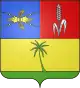 Coupé : au I parti, d'azur au foudre ailé d'or, et des barons propriétaires ; au II, d'or à un palmier terrassé de sinople.[5] |