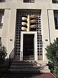 - 1954-1956 : À la demande de Fernand Pouillon, totem en façade d’un immeuble-tour de 40 mètres de haut (quartier Diar es Saada) et cinq fontaines (Diar el Mahçoul), à Alger. Panneau émaillé Ecole Grassi à Aix.