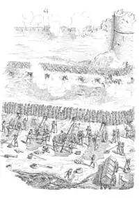 Au lieu d’élever des bastilles tout autour de la ville, les assiégeants établirent, devant les grandes forteresses, un parc entouré d’un retranchement situé dans une position centrale, hors de la portée du canon. De ce point, ils conduisirent un ou deux boyaux de tranchée vers les pointes où ils placèrent leurs batteries[6]... Nous sommes arrivés au moment où les tranchées furent employées comme moyen d’approche concurremment avec les couverts en bois[7]... Aux frères Bureau revient l’honneur d’avoir les premiers fait l’emploi le plus judicieux de l’artillerie à feu dans les sièges. De sorte que les obstacles tombèrent devant eux, les murailles frappées ne résistaient plus à leurs boulets et volaient en éclats. Les villes que défendaient les Anglais et qu’ils avaient mis des mois entiers à assiéger, lors de leur invasion, furent enlevées en peu de semaines. Ils avaient employé quatre mois à assiéger Harfleur, en 1440; huit mois à assiéger Rouen, en 1418; dix mois à s’emparer de Cherbourg, en 1418, tandis qu’en 1450, toute la conquête de la Normandie, qui obligea à entreprendre soixante sièges, fut accomplie par Charles VII en un an et six jours[8].