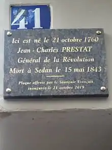 À l'initiative du lieutenant (r.c) Florian Thompson, le Souvenir Français de Villefranche de Rouergue a fait apposer une plaque commémorant la naissance du Général Jean-Charles Prestat le . Cette plaque est fixée sur la façade de sa maison natale au 41, rue Marcellin Fabre à Villefranche de Rouergue (actuelle bijouterie Di Bacco).