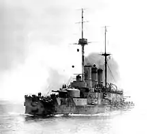 | Armement | 4 × 305 mm, 4 × 203 mm, 12 × 152 mm, 4 × 7,62 mm, (mitrailleuses) 2 tubes lance-torpilles d'un calibre de 456 mm |