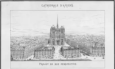 - 1855 : abords de la cathédrale : projet de dégagement, dont percement d'une vaste perspective donnant sur le massif ouest