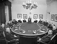 En 1942, alors que le Canada se déchire sur la question de la conscription, il recrute deux nouveaux associés pour son cabinet : Valmore Bienvenue (ministre de la Chasse et des Pêcheries dans le gouvernement d'Adélard Godbout) et Chubby Power (ministre de l'Air et ministre associé de la Défense nationale dans le gouvernement de Mackenzie King, ami de son oncle J.A. Lesage et autre principal organisateur libéral de la région de Québec) [Note 1]. Ces deux nouveaux associés constituent de puissants soutiens auprès du gouvernement fédéral et du gouvernement du Québec[15].