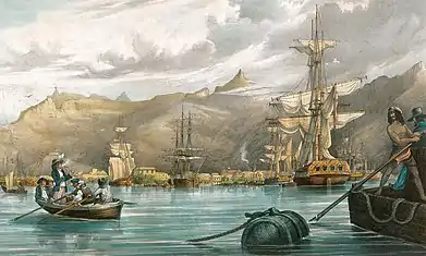 1782. Le a lieu le dernier départ de cinq navires, cette fois au profit de la Compagnie néerlandaise des Indes orientales (VOC), pour la défense du Cap de Bonne-Espérance contre les Anglais. Les bateaux feront le voyage sous la protection de l'escadre de Peynier[12]. Après bien des négociations, ils seront vendus sur place au roi de France par Robert Pitot qui avait une procuration de Montieu pour les vendre à leur arrivée à L'Isle de France. Les bateaux continueront leur route vers l'Isle de France puis les Indes pour approvisionner Suffren. Pitot, lui continue sa route vers la France et sera capturé par les Anglais.