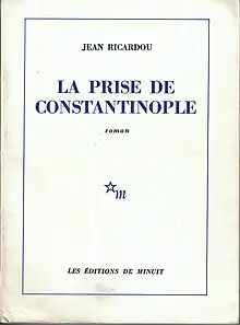 Fort du succès d’estime qu’a remporté L’Observatoire de Cannes, Ricardou entreprend bientôt un second roman, beaucoup plus ambitieux, La Prise de Constantinople[14], lequel obtiendra, avec le soutien de Jean Paulhan, le prix Fénéon.