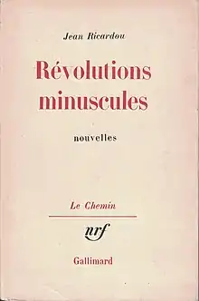- Révolutions minuscules, nouvelles, Gallimard, collection Le chemin, Paris 1971, 172 p. (épuisé), réédité dans une version récrite, précédée d'un inédit, Révélations minuscules, en guise de préface, à la gloire de Jean Paulhan, Les Impressions nouvelles, Paris 1988, 200 p. (épuisé); version originale de 1971 rééditée dans l'Intégrale Jean Ricardou tome 5 (1971).