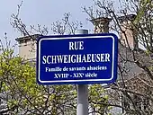 Le nom d'une rue de Strasbourg, dans le quartier de l'Orangerie, rend hommage à la famille Schweighaeuser[2].