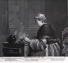 - Une femme occupée à cacheter une lettre[18], gravé par Étienne Fessard (1714-1777) :