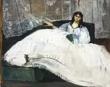Jeanne figurait sur cette toile, mais Courbet l’a dissimulée sous une couche de peinture[41]. Ironiquement, le temps faisant son œuvre, cette couche de peinture s’est altérée et Jeanne est de nouveau visible près de son amant (repentir) ; - Édouard Manet, Maîtresse de Baudelaire, huile sur toile, 1862, Musée des beaux-arts de Budapest.