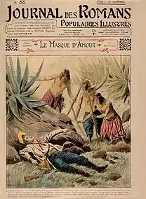 - Illustrations d'Eugène Damblans pour Le Masque d'amour publié en roman-feuilleton dans le Journal des romans populaires illustrés, début du XXe siècle