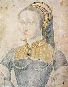 Jeanne III d'Albret, reine de Navarre. Portrait au crayon, Paris, BnF, département des estampes, XVIe siècle. | |