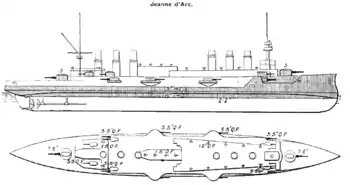 Le croiseur cuirassé Jeanne d'Arc, construit en 1895 d'après les plans de Louis-Émile Bertin, fut à son époque le plus grand et plus puissant bâtiment de la marine française. Il fut lancé en 1902 du chantier naval du Mourillon à Toulon. Son blindage de ceinture, de passerelles et tourelles était de 150 mm.