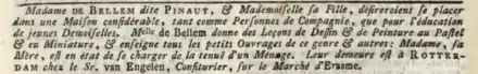 Cependant, l'on sait depuis lors qu'elle est morte à Amsterdam, alors en République batave, le 12 octobre 1805 et une fiche d'état civil amstellodamois atteste de son décès à cette date[13]. Des annonces notariales parues notamment les 21 et 23 janvier 1806 dans le journal Rotterdamse courant, le 19 mai 1807 dans le journal Amsterdamse courant, et le 19 mai 1807 dans le journal Oprechte Haarlemse Courant[14] ont permis de retrouver sa trace avec certitude en la nommant de Bellem. En effet, dans ces annonces, elle est nommée Dame ou mademoiselle Therese ou Theresia Pinaut, veuve de Bellem, et sa succession fut réglée par le bureau du notaire Ts. Janssen[15], dont l'étude était située à l'Heerengragt à l’angle du Warmoesgracht, à Amsterdam, à qui les héritiers devaient s’adresser avant la fin du mois d’août 1807. Il faut aussi en conclure que sa succession n'était pas complètement déficitaire malgré la gêne dans laquelle elle aurait vécu ses dernières années et même si elle fut inhumée pro deo avec les onvermoogende lijken (les défunts insolvables)[16]. Elle fut inhumée au Sint Anthonis Kerkhof d'Amsterdam (cimetière Saint-Antoine)[17], un cimetière qui fut désaffecté au XIXe siècle et qui est aujourd'hui bâti en grande partie. L'acte d'inhumation précise qu'elle habitait au Keyzersgracht over de Westermarkt (ce dernier mot Westermarkt étant abrégé dans l'acte).