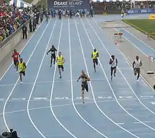 - (en) Wariner est disqualifié pour avoir posé le pied dans la ligne intérieure