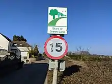 Panneau de jumelage entre les communes de Saint-Ouens et Coutances. En anglais et en jersiais, mais pas en français