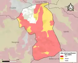 Le retrait-gonflement des sols argileux est susceptible d'engendrer des dommages importants aux bâtiments en cas d’alternance de périodes de sécheresse et de pluie. 87,8 % de la superficie communale est en aléa moyen ou fort (84,7 % au niveau départemental et 48,5 % au niveau national). Sur les 90 bâtiments dénombrés sur la commune en 2019, 87 sont en aléa moyen ou fort, soit 97 %, à comparer aux 86 % au niveau départemental et 54 % au niveau national. Une cartographie de l'exposition du territoire national au retrait gonflement des sols argileux est disponible sur le site du BRGM[23],[24].