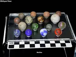 Il existe aussi des billes dites « pépites » parce qu'agrémentées de petits grains colorés.