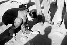Un jeu pour plusieurs joueurs. Tracez deux cercles - un cercle de 20 cm de diamètre appelé l' "enclos" et autour de ce dernier, un cercle de 3,5 m de diamètre appelé la "barrière". Chaque joueur dépose une ou plusieurs billes dans l'enclos. Le premier joueur tire un calot, de n'importe quel point en direction de l'enclos. Les billes qu'il chasse de l'enclos deviennent sa propriété. S'il ne capture aucune bille, son calot demeure où il se trouve à condition qu'il soit à l'intérieur de la barrière et à l'extérieur de l'enclos. S'il se trouve dans l'enclos, il doit le ramasser et payer une bille à l'enclos. Les joueurs suivants peuvent tirer en direction de l'enclos ou du calot d'un adversaire. Si un calot touche un autre calot, le propriétaire du calot touché doit payer une bille à l'enclos. En plus de cette amende, le propriétaire du calot touché doit céder toutes les billes qu'il a capturées au cours de la partie au propriétaire du calot qui a touché le sien.