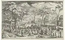 La pratique du tir à l'oie est attestée aux Pays-Bas dès le début du xviie siècle ; le poète Gerbrand Adriaensz Bredero y fait référence dans son poème nommé Boerengeselschap (Compagnie de paysans) de , décrivant comment un groupe de paysans se rend à un concours de tir à l'oie près d'Amsterdam se terminant en bagarre brutale. Il en conclut qu'il est préférable pour les citadins de rester à l'écart des plaisirs paysans[23].