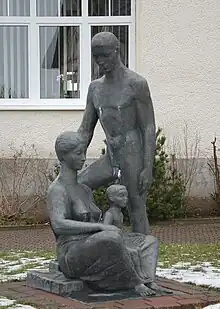 La sculpture, aussi indiquée comme « Vater-Mutter-Kind » (Père-Mère-Enfant), se trouvait initialement devant le centre de vacances de la FDGB Fritz Heckert. Après la fermeture du centre en 1990 et l'abandon du site, la sculpture fut gardée en sécurité en 1999 et fut, plus tard, érigée de nouveau dans la cour d'un terrain au 25 rue de la gare (Bahnhofstrasse, 25) aujourd'hui 25 rue Otto Franke. Dans le passé, une villa non conservée se trouvait sur ce terrain[1].