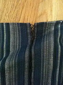 Le haut se compose d'une veste à manches courtes, parfois sans manches, tombant sur la hanche. Elle se noue à l'intérieur et à l'extérieur en commençant toujours par l'intérieur. La veste se plie vers la droite avant d'être attachée à l'extérieur.