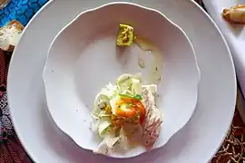 Le restaurant accueille 30 à 40 personnes par jour[5], selon un véritable rituel comprenant une quinzaine de mets raffinés à base d'ingrédients le plus souvent produits dans le jardin ou la basse-cour de la roça. Le décor – cuisines et tables installées sur une large terrasse donnant sur la baie d'Angolares –, la forte personnalité du chef et son exposition médiatique contribuent indéniablement au succès de l'entreprise[2].
