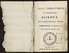 Même si le manuscrit de la traduction des quatre Évangiles, des Actes des Apôtres, des Épîtres et de l'Apocalypse date de 1740, il ne fut publié qu'en 1855, lorsque Dassance et Harriet l'adaptèrent, sous le titre Jesu-Christo gure Iaunaren Testament Berria [Nouveau Testament de Notre Seigneur Jesus-Christ].
