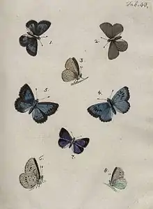 - Jo. Andr. Benigni Bergstraesseri... Icones papilionum diurnorum quotquot adhuc in Europa occurrunt descriptae... Decuria prima, oder Abbildungen und Beschreibungen aller bekannten europaeischen Tagfalter. Erstes Zehendt (Hanovre, trois parties, 1779-1781).
