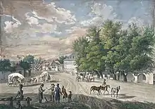 Vue du Tabor Linie (octroi de Vienne), vers 1840, lith. rehaussée d'après Joseph Gerstmayer.