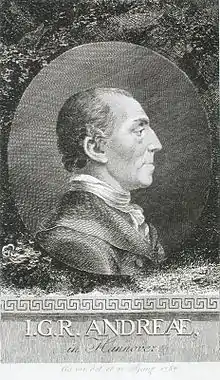 - (en) Cet article est partiellement ou en totalité issu de l’article de Wikipédia en anglais intitulé « Johann Gerhard Reinhard Andreae » (voir la liste des auteurs).